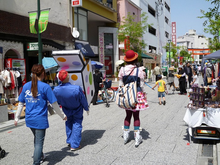 この商店街にもパフォーマー。
