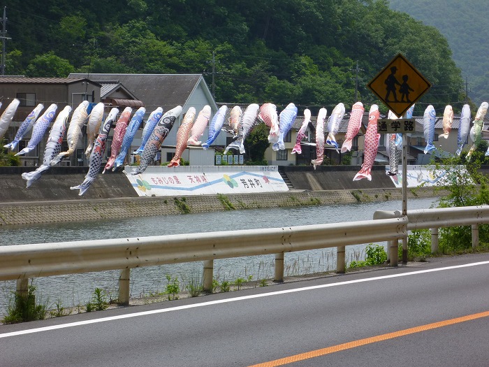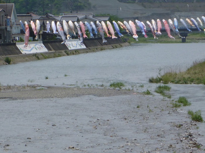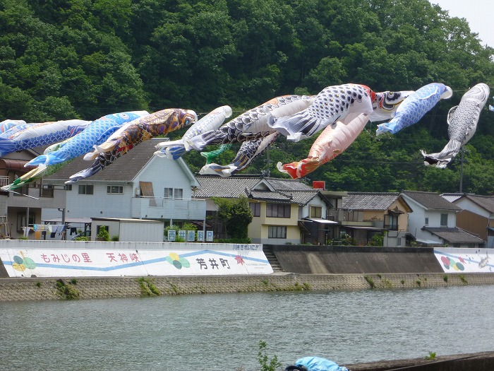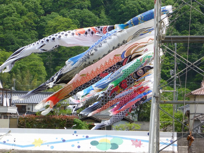 子供の日は過ぎたが芳井名物の鯉のぼりはまだ泳いでいた。