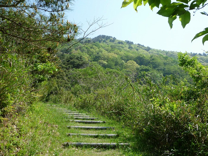 (ひたすら山中の樹木の中を登るだけでなく) 登山道の半分くらいは眺望がある道だった。