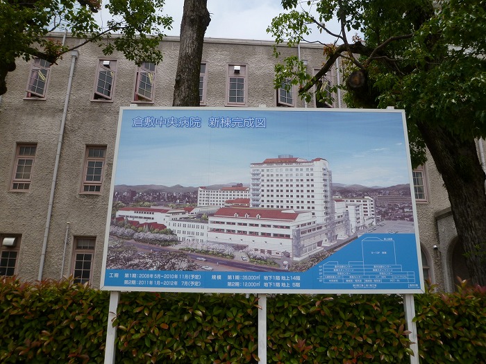 大きな建物は工事中の「倉敷中央病院新棟」。