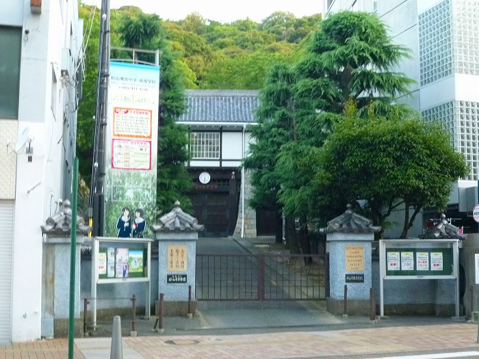 城山ロープウェイ通りの、この東雲高校の前で右折する。