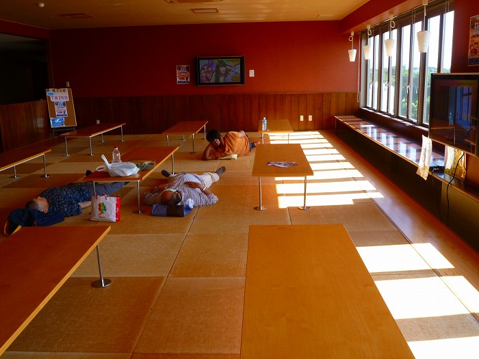 これが休憩室、自由な格好でのんびり。