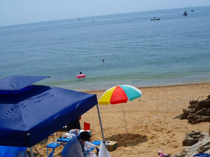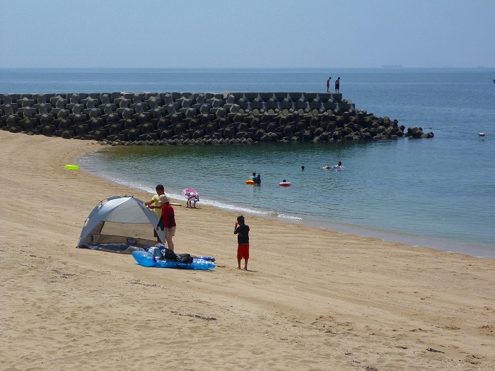 きれいな海と砂浜の横山海岸海水浴場だが、そんなに海水浴客はいない。
