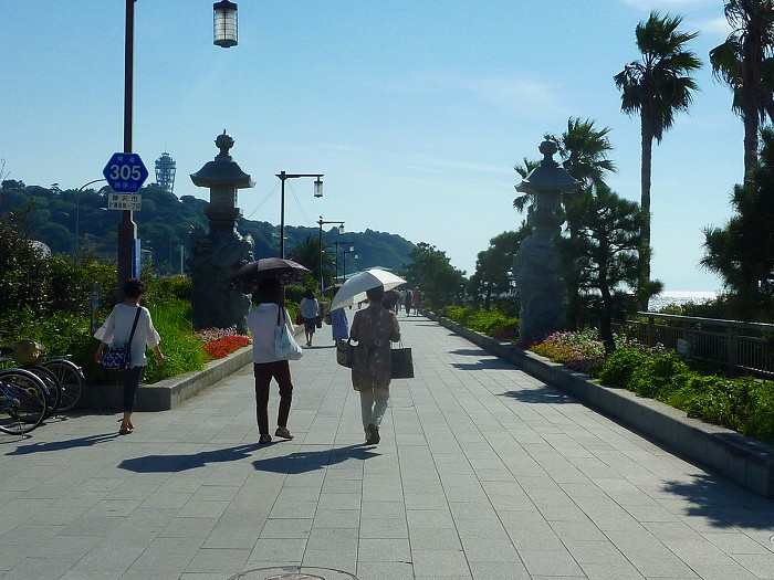後でわかったが、江の島は平坦地がなくすべて登り降りの坂道。