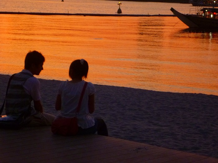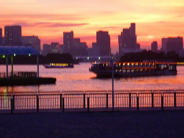 海上に浮かぶ遊覧屋形船の灯りもきれい。