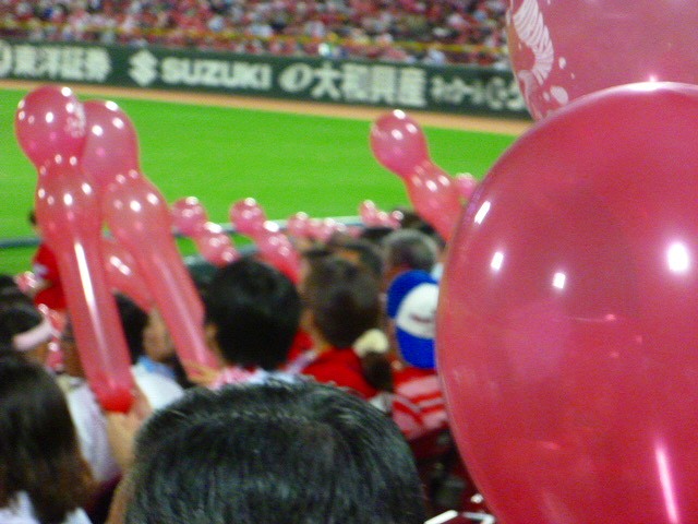 いつも、お祭り騒ぎの応援カープ側の外野2階席。楽しそう。