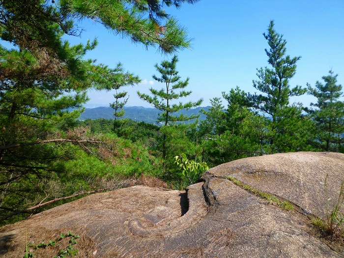 山頂の大岩に立って展墓するが・・・・松の枝木が見えるだけ。