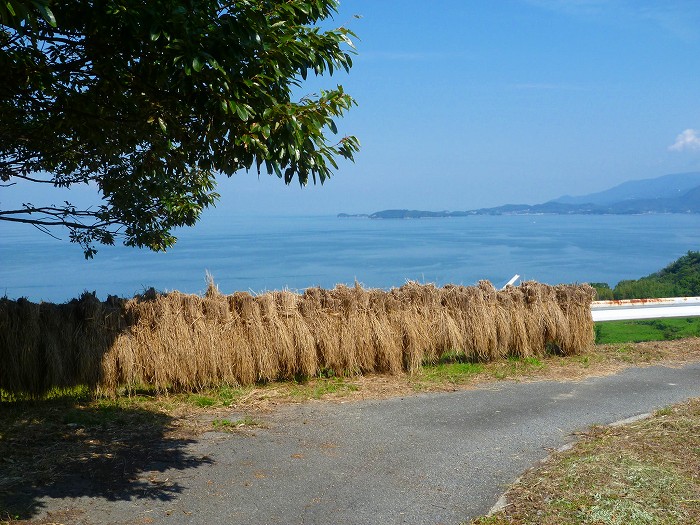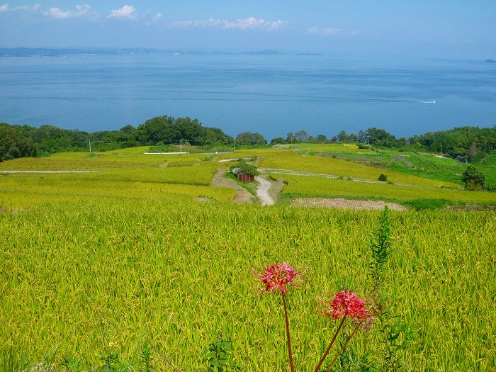 こんな贅沢な景色の棚田はない、道も海にせりだしている。