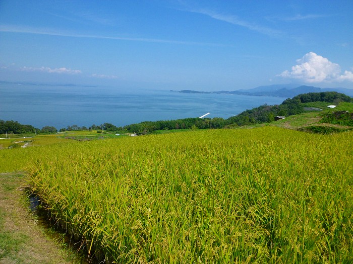 唐櫃の棚田は海と合致一体化して、それは感動する見事さがある。