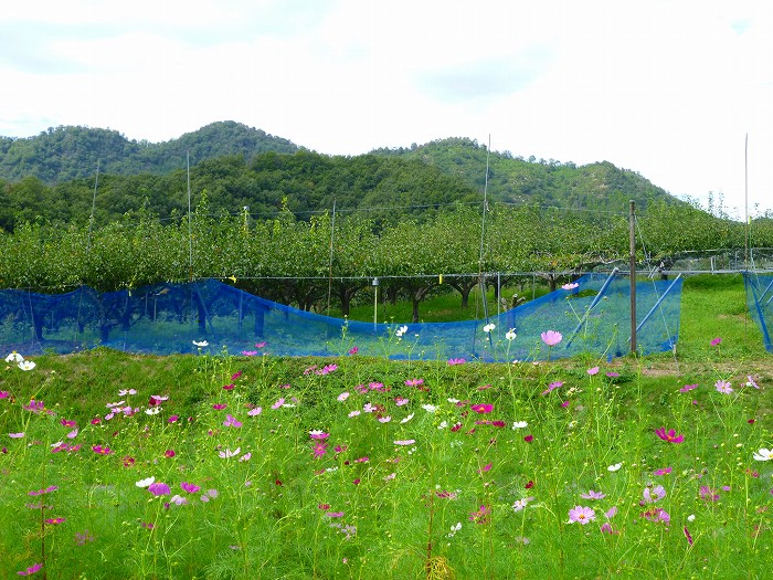 梨畑のまわりにもコスモス。