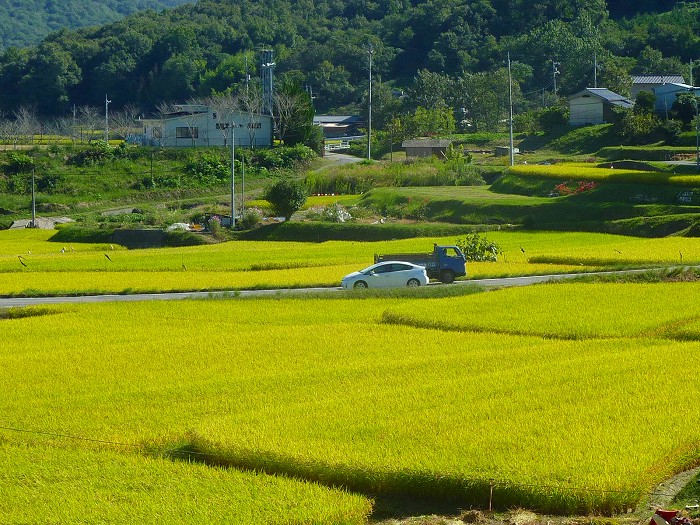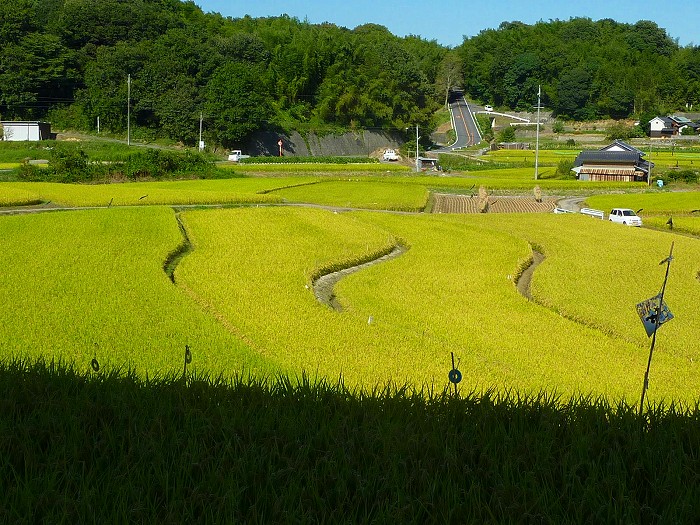 棚田を横断する農免道路。