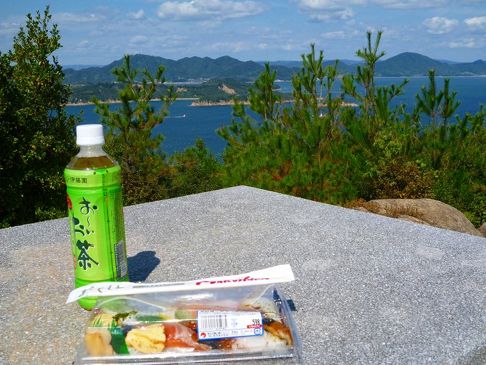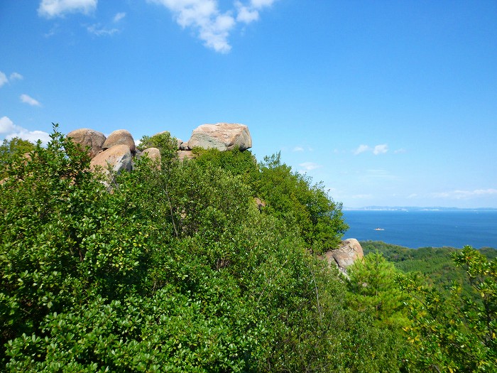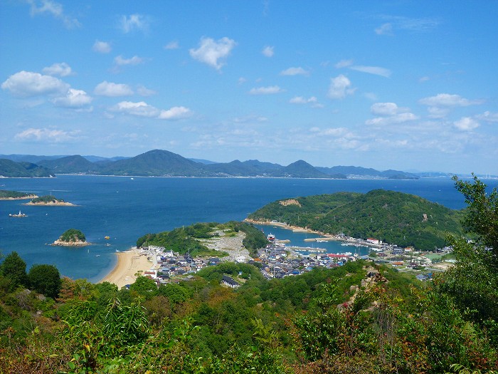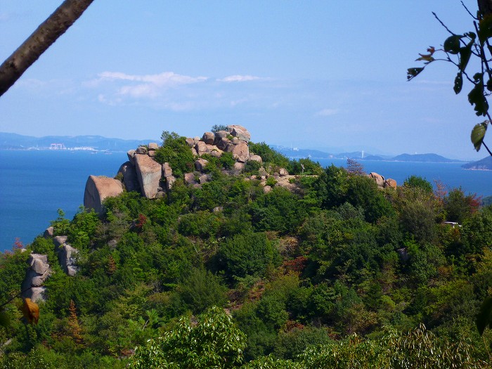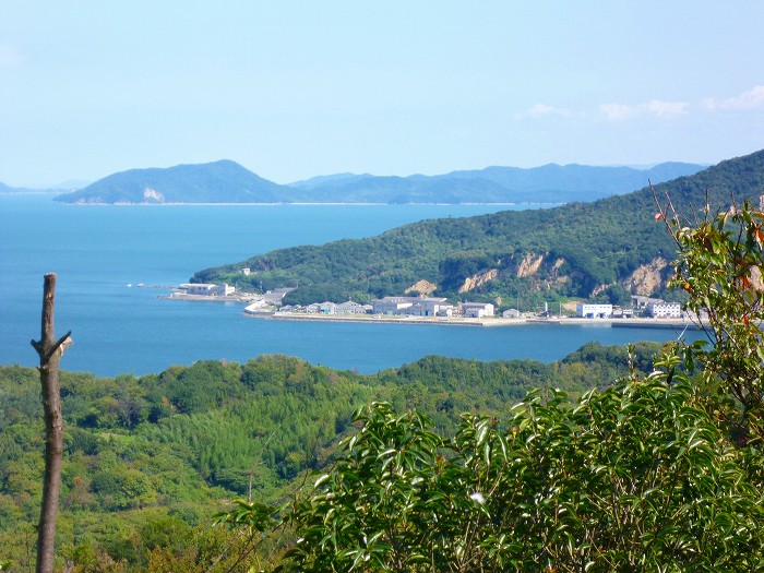 鎧岩への途中の展望台。北木島金風呂港が前に見える。