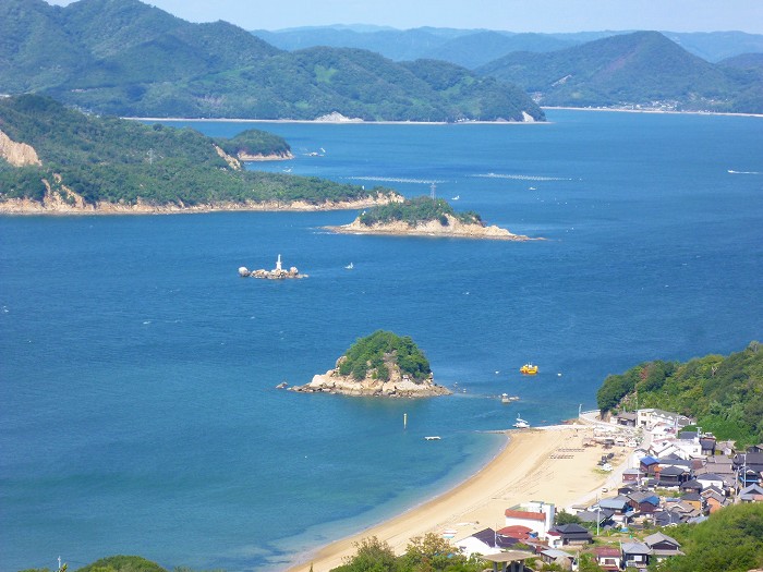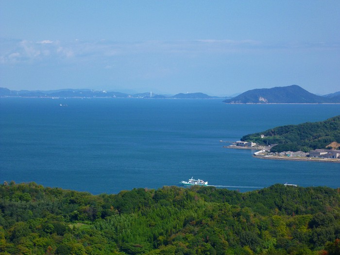 ほぼ正面が愛媛県弓削島。右へ因島・生口島・田島横島など。