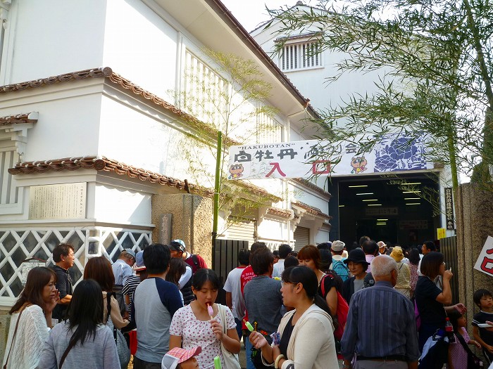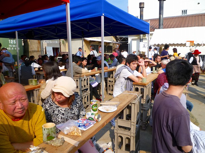 酒泉館の庭がまた大飲酒コーナーとなり、食べたり飲んだりの人。