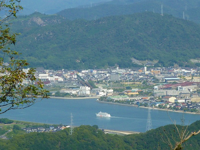 応神山。笠岡水道を行く金風呂丸。