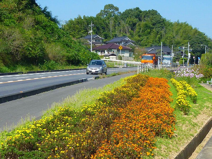 陶山郵便局近くの県道沿いの花壇。