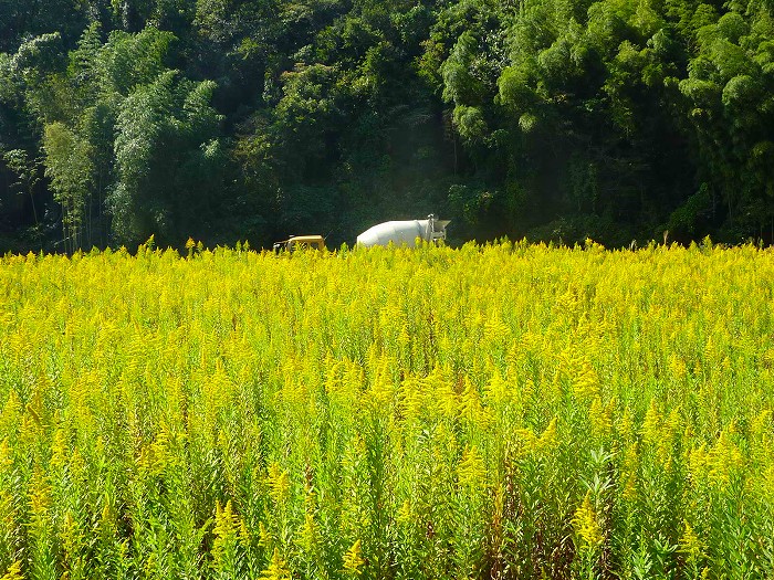 セイタカアワダチ草の背が高いので乗用車は写らない。