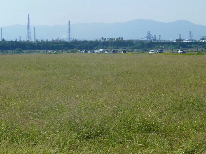 (カブト西町に並ぶ他県ナンバーの野鳥観察者の車)
