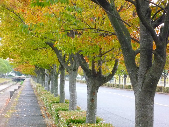 ついでだから運動公園と自動車学校の間の街路樹を見に行こう。
