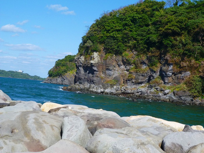 これは萩港から見る鶴江台の西端。このように浸食涯になっている。