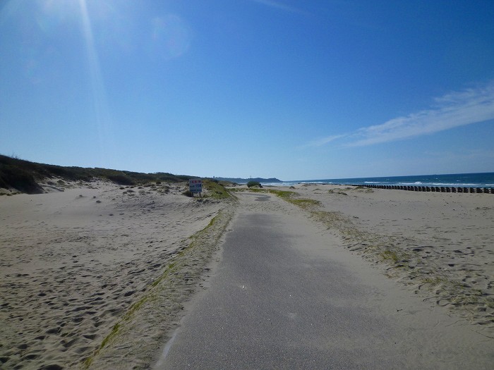 砂丘には舗装道が横切る。この砂丘は5.5kmある。