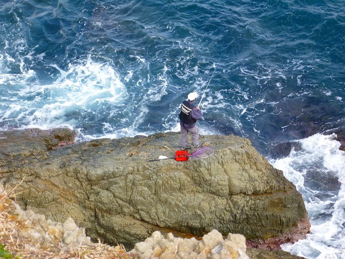 今日見た釣り人のうち、一番とっさきいうか、岩場の先で釣っている人。