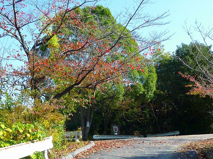 城山への道、崩れそうな山道になんともいえない秋の色。