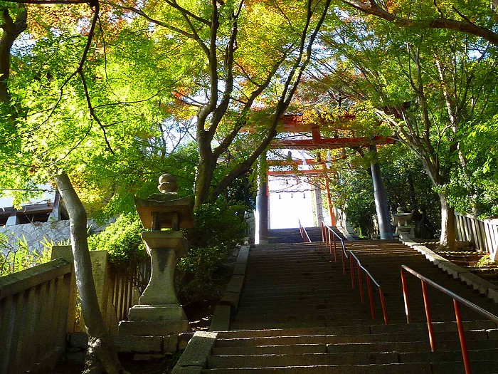 稲富稲荷の参道石段の紅葉。