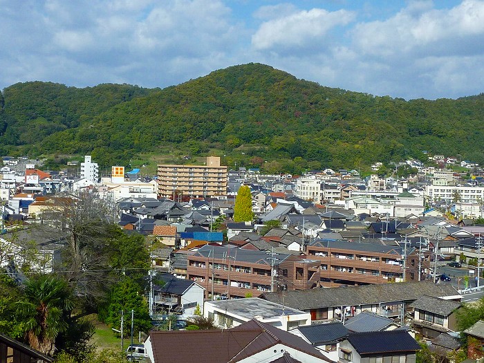 荒神山の笠神社ルート登山口から見る笠岡。