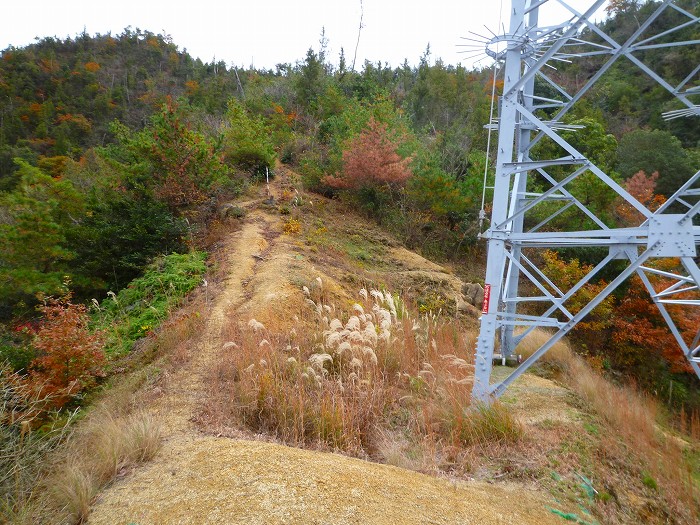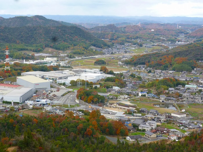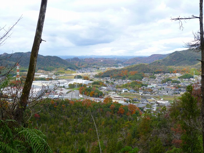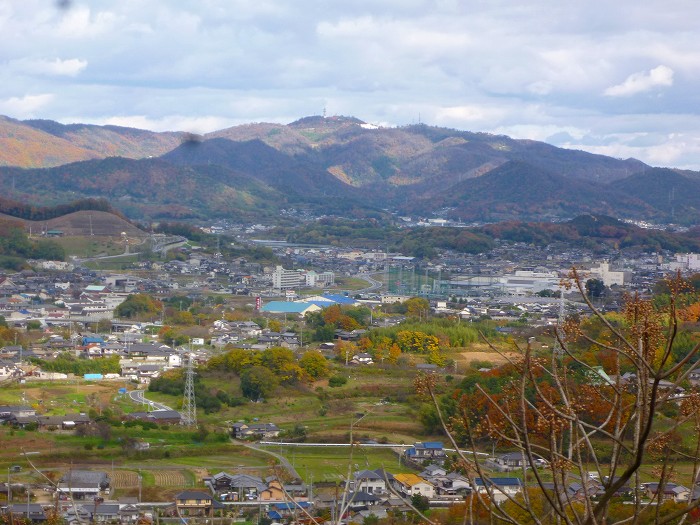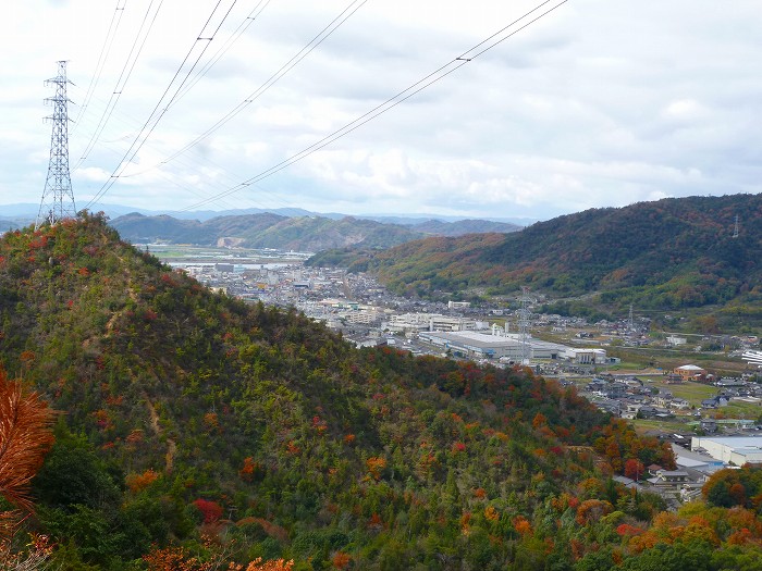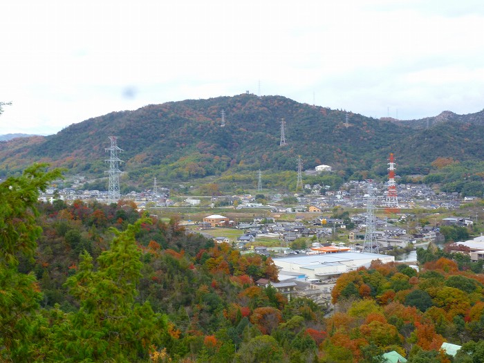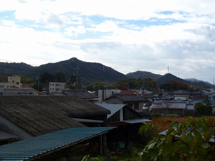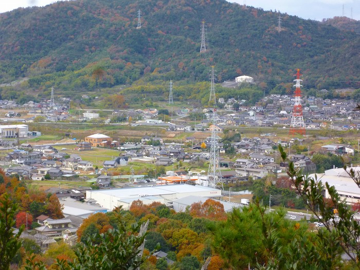 鉄塔下から望む里庄町里見や鴨方の遙照山。