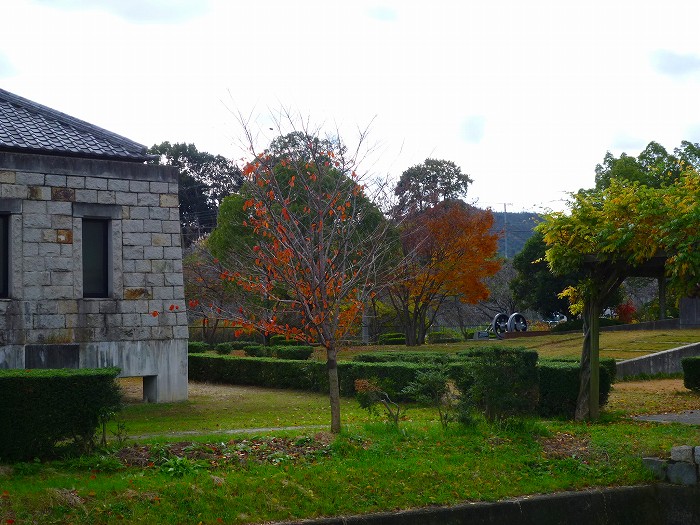 「里庄町歴史民俗資料館」の紅葉を見ながらすすむ。