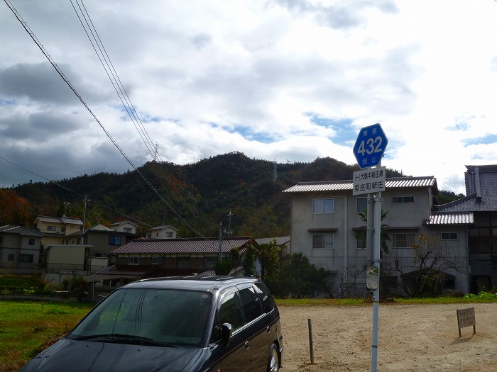 県道432線(大島の郵便局から里庄の2号線へ抜ける山道)を山に向かう。