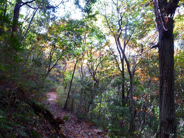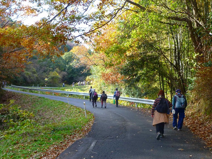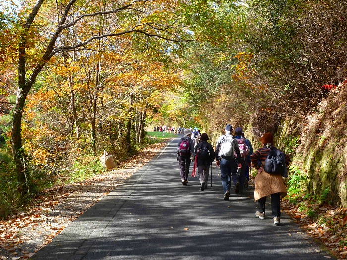 このように県道とはいえ、ウオーキングにぴったしの山道。