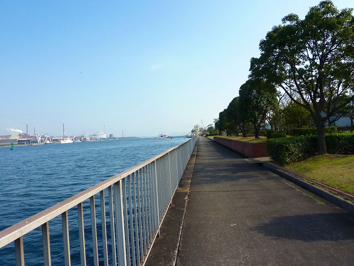 福山港の公園を日本丸へすすむ。対岸はJFE。