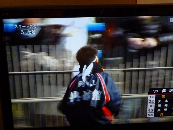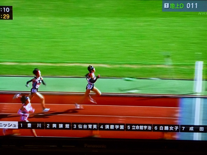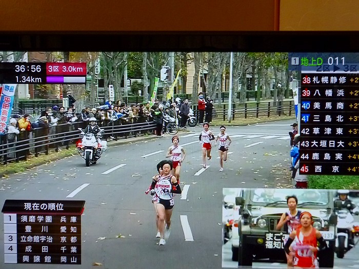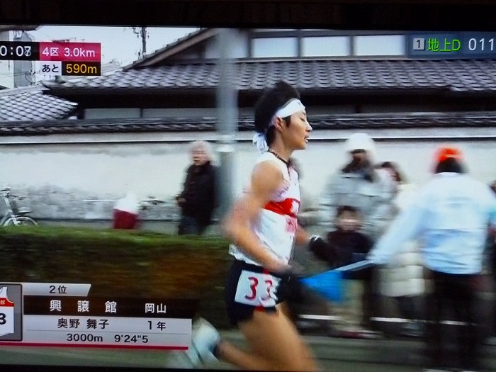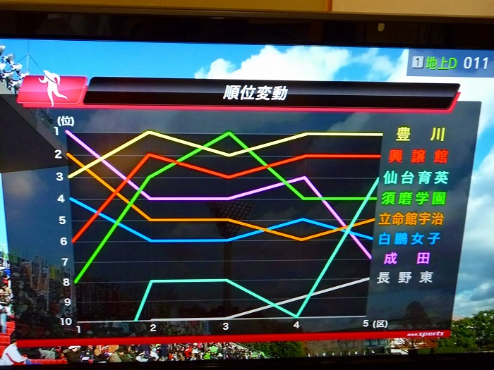 テレビも興譲館の第一走者・菅を映す。