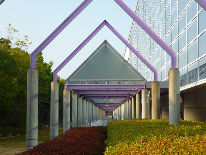 展示場前の長ーーーーーい、通路兼休憩ベンチ。