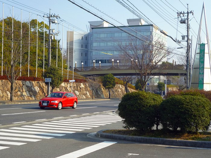 メイン道路の右には「ようこそ早島へ」の歓迎の塔があり、