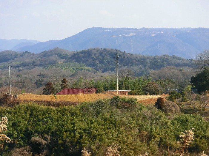 右に井原市の焼却場、左に四季が丘団地が見える。遠方は井原市の野上町方面。