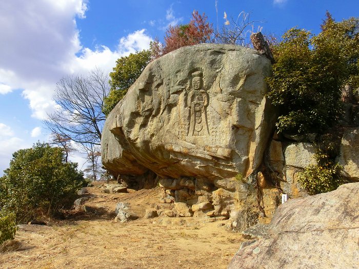 鴨山の磨崖仏を見ながら下って行く。