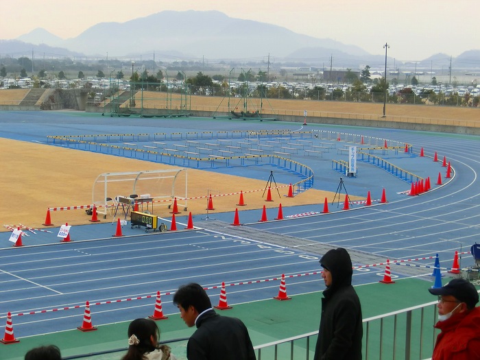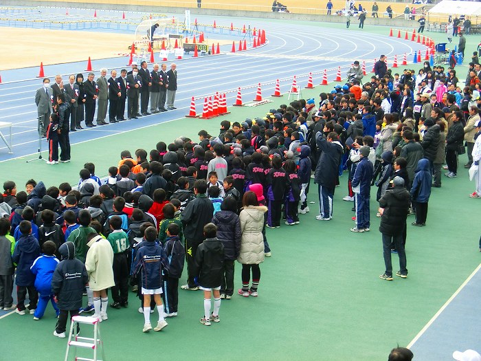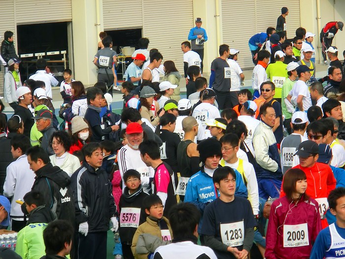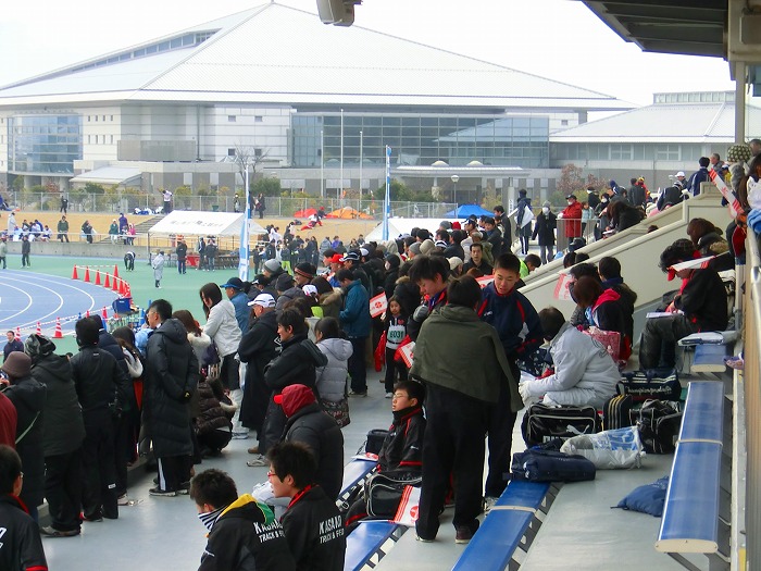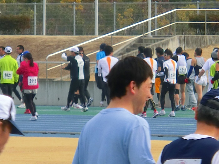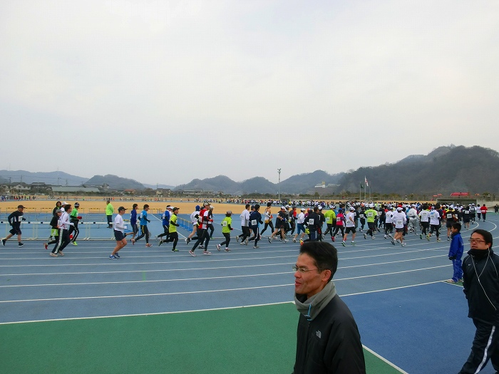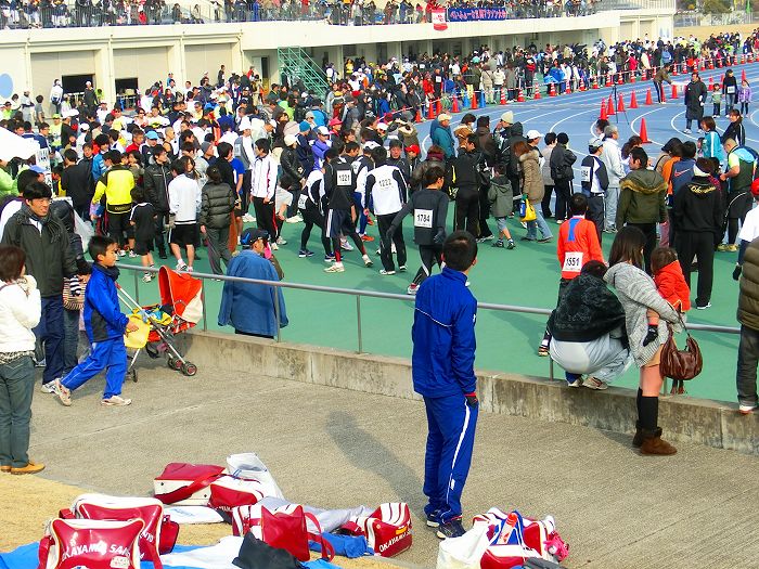 スタート10分前、ハーフ選手が競技場にあつまりだした。