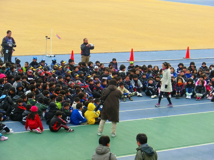 小学生たちへ有森さんのランニング教室がはじまった。