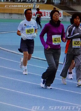 少年少女選手たちに声を掛けながら走る有森裕子さん。