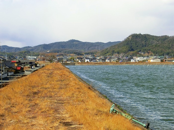 このように大きな溜池。今日のように風がある日には、池に波もたつ。