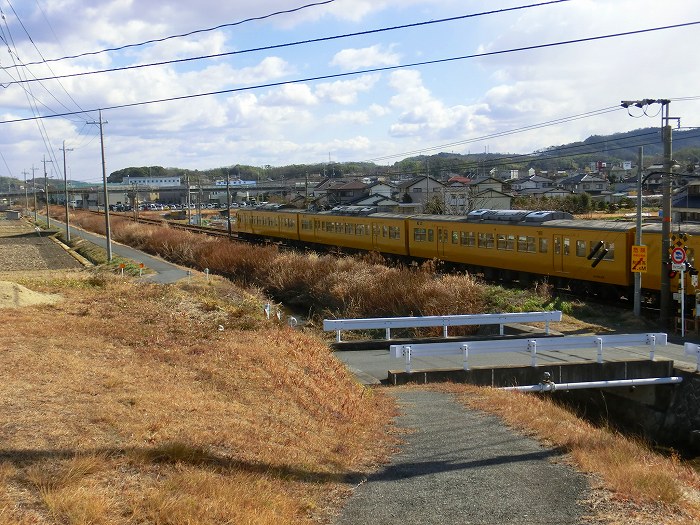 土手から見る山陽本線。