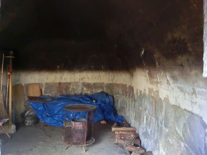 アーチ状の穴を覗きこむと暖炉のようなものが置かれていた。