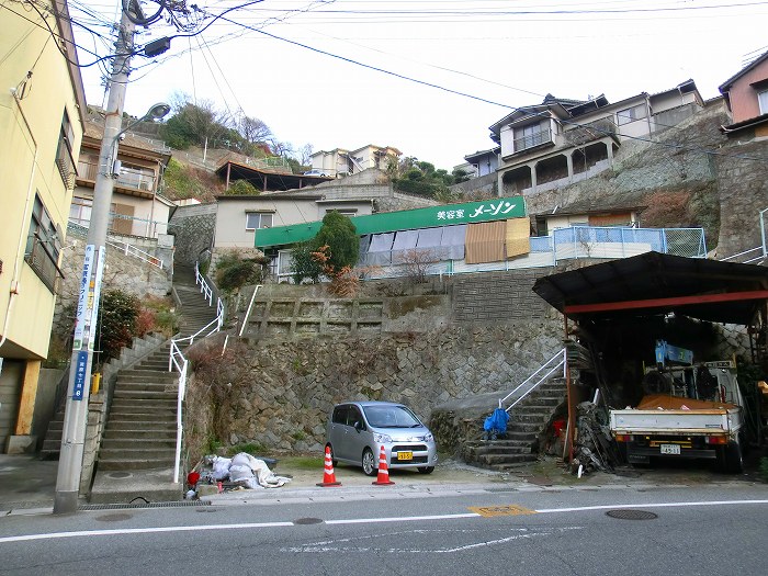 寮の上にある「宮原8丁目」バス停。ここで呉市営バスに乗って中通りまで通勤していた。