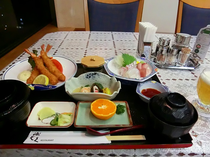 大浴場で身体(というより疲れた脚)を癒してから11階のレストランに行った。