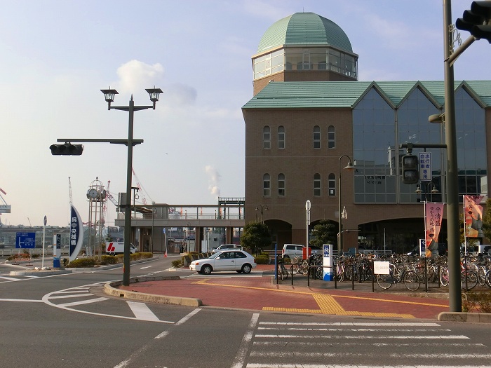 中央桟橋から見る自衛艦やIHIのドッグ。