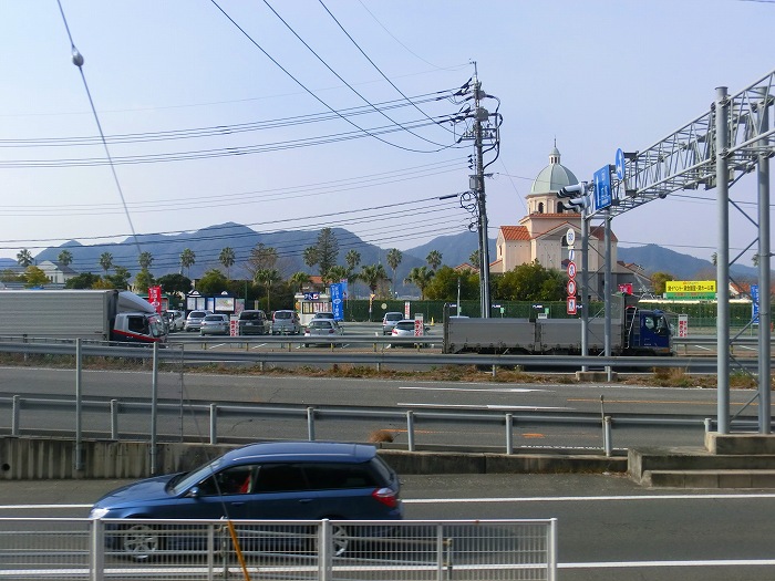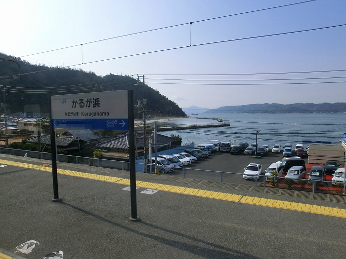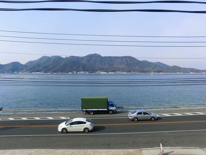 かるが浜と天応駅の間の車窓。江田島と国道31号線。