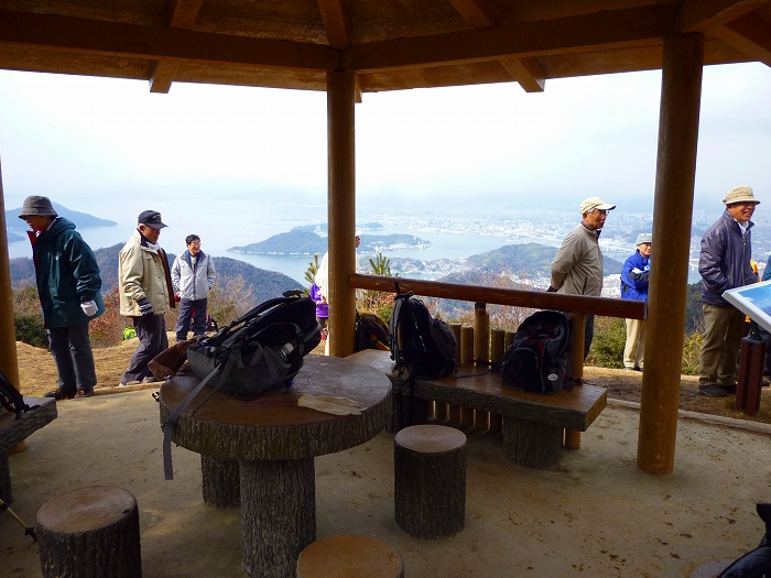 山頂では同好会の会員仲間らしい人が賑やかに眺めを楽しんでいた。